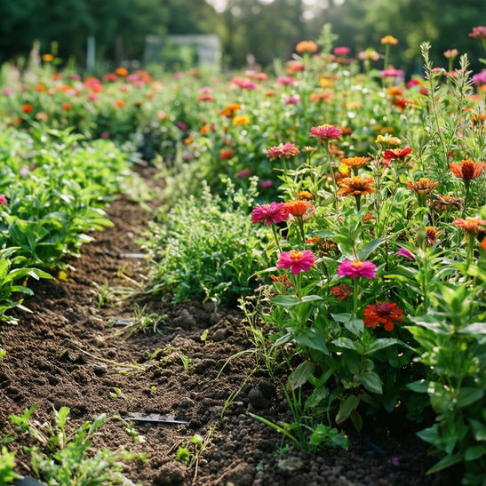 Avant/Après d'un parterre envahi par les mauvaises herbes, transformé en un espace fleuri et ordonné. Met en avant la rénovation complète, le désherbage minutieux et le nouvel aménagement végétal.